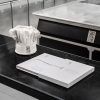This linen chef’s hat with Villa d’Este’s logo is perfect to complete your kitchen outfit.