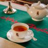 Set di due tazze da tè in porcellana con piattini abbinati, con trama Osier, eleganti bordi dorati e stemma di Villa d’Este in quadricromia.
