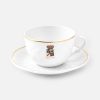 Set da due tazze tè con piattini, in porcellana con bordi in oro e stemma di Villa d’Este