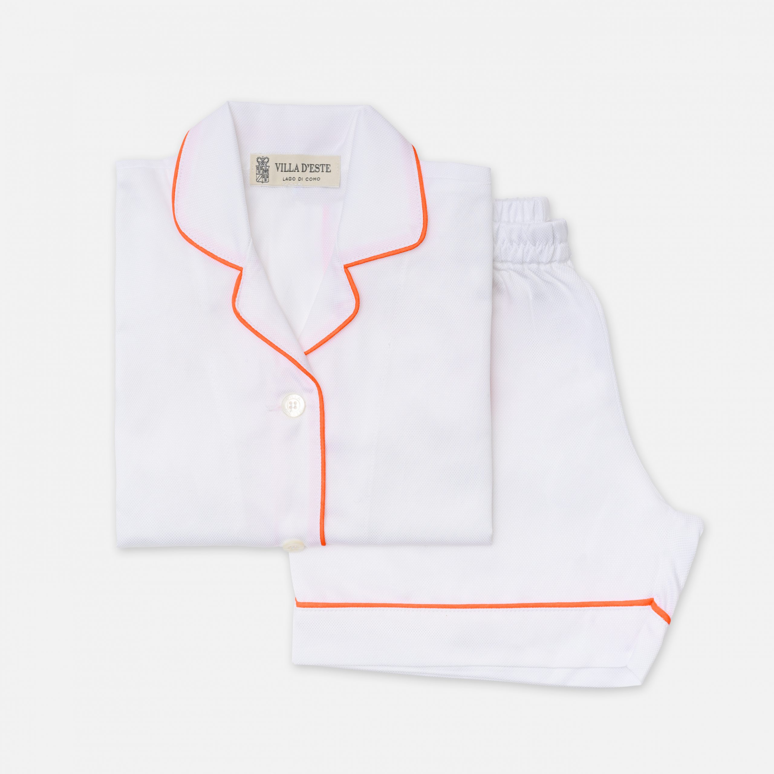 Pigiama bimbi corto in cotone piqué con tashcino e stemma Villa d’Este ricamato.