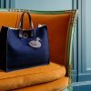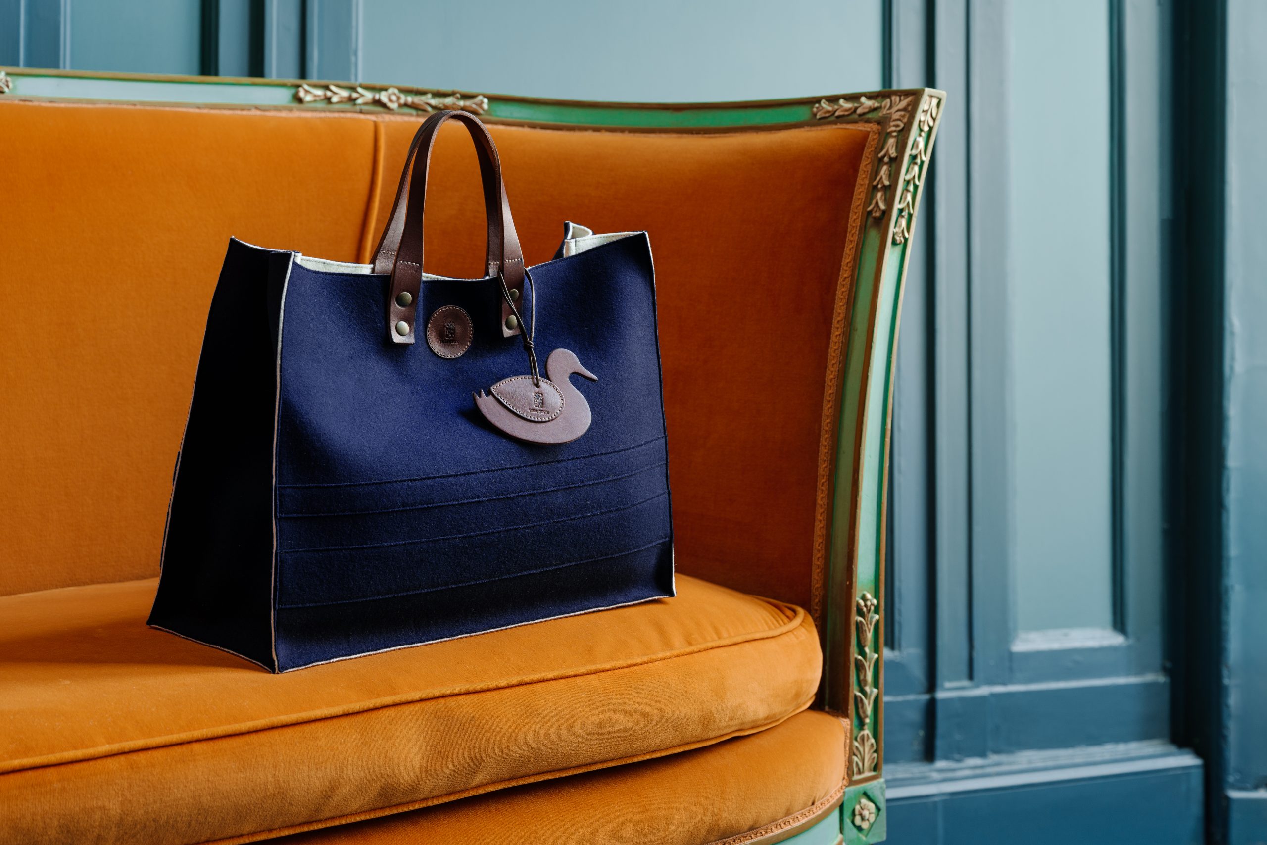 | Materiali e tessuti | Feltro con base e manici in cuoio, tracolla regolabile in tessuto |