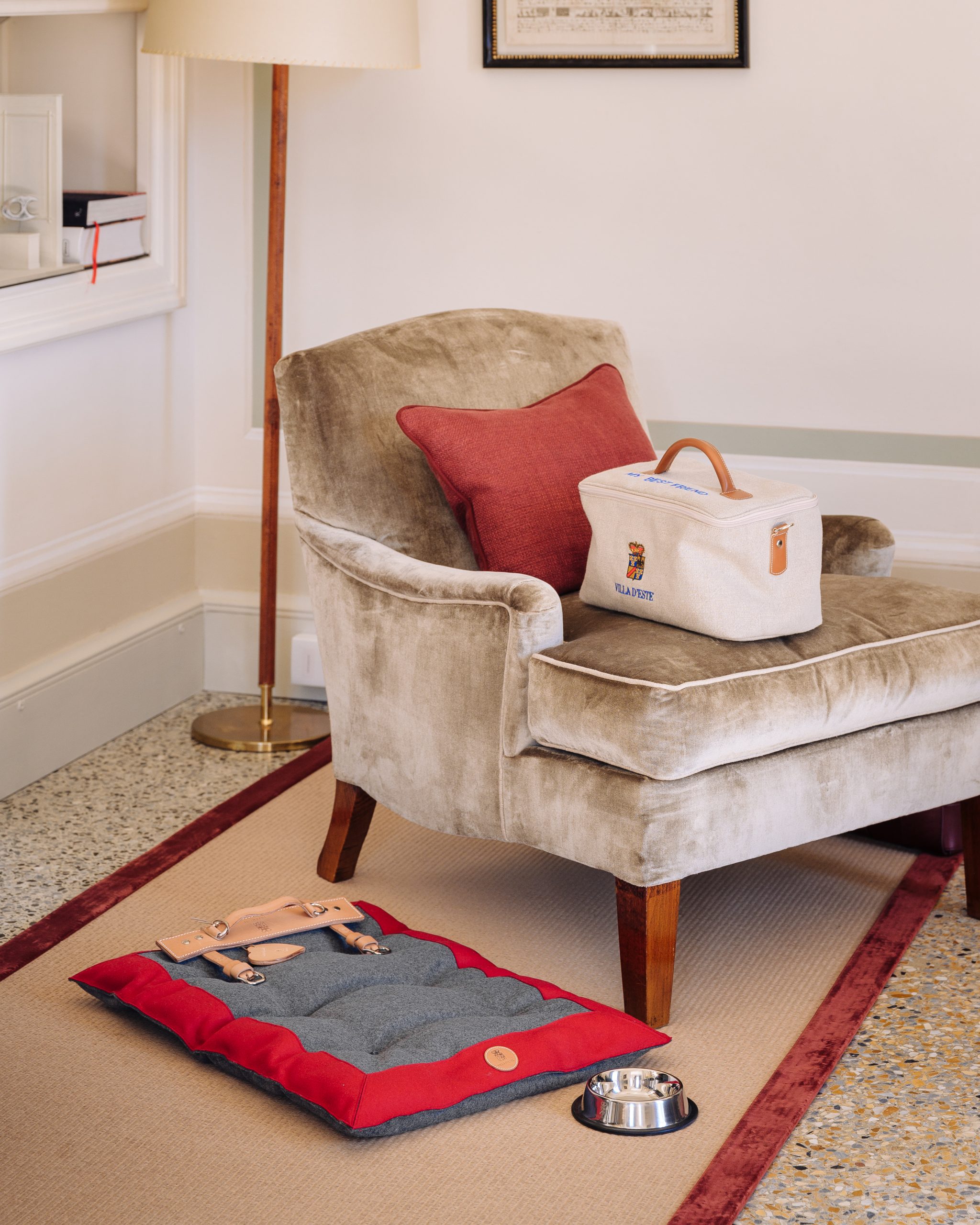 Un lettino in lana comodo e soffice, con eleganti dettagli in cuoio per il dolce riposo dei nostri amici a quattro zampe.